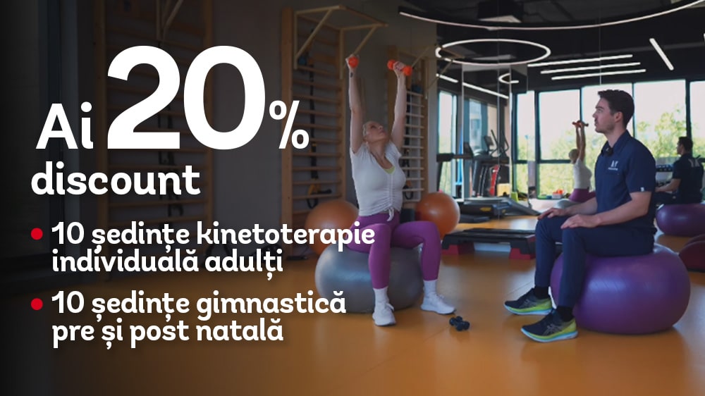 - După achiziție, te poți programa la ședințele de kinetoterapie într-un interval maxim de 6 săptămâni.